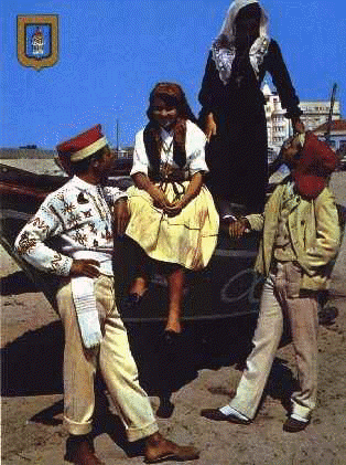 O traje típico é o elemento externo onde mais facilmente se notam as particularidades de cada zona. A forma de vestir do pescador poveiro destaca-se pela sua originalidade. O traje de "branqueta", apresentado pelo Grupo Folclórico Poveiro, é somente um dos muitos e interessantes modos de trajar da "colmeia" piscatória. Nas outras comunidades , destaca-se na zona litoral, o uso de tecidos mais quentes , como a flanela e a castorina, reflexo da sua ligação ao mar. Nos ranchos ligados aos bairros representativos da cidade, o traje de Tricana, com blusas de renda, aventais bordados e pintados, dão um colorido muito interessante.