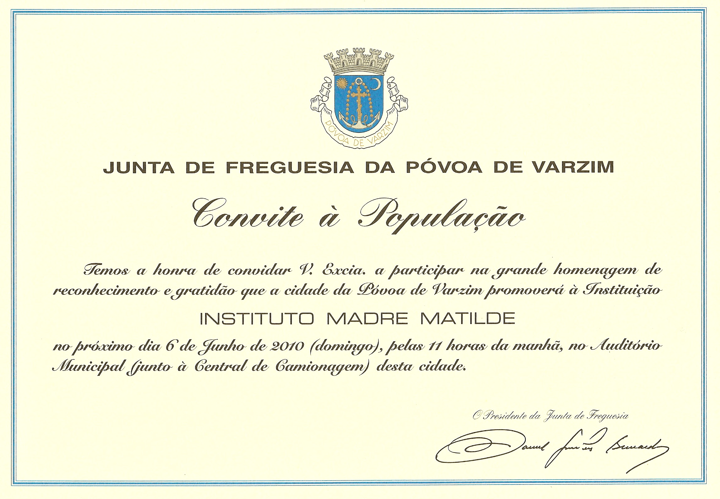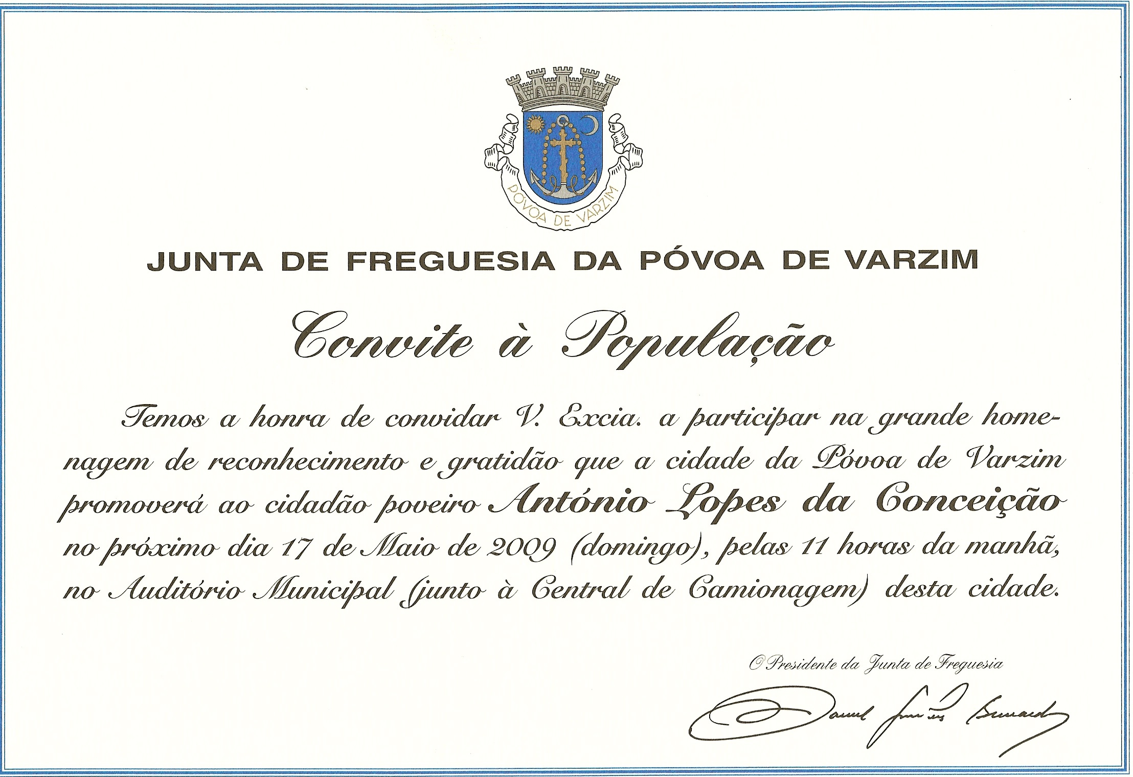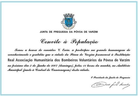 e o reconhecimento, uma memória que a Junta de Freguesia da Póvoa de Varzim